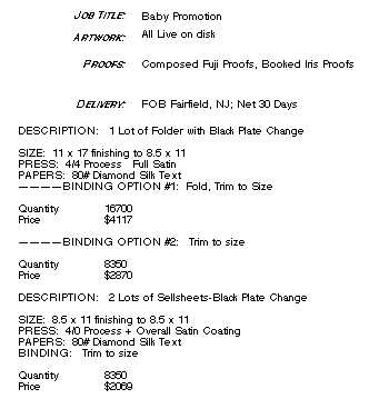 But if there were multiple binding options to be priced out, to list other categories first and then put BINDING OPTION #1 down lower, listing what that option was, and then the prices and quantities there. And if, in addition to different options for binding, there were different options for types of paper, the paper options should be listed first if there were more binding options than paper options (i.e., list each paper option, then, within it, each binding option and the prices and quantities for each); whereas, if the paper options outnumbered the binding options, to list them in the other order.