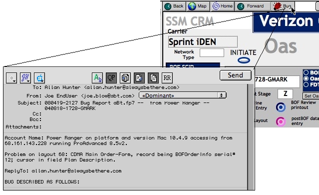 - Bug Report Button, one function on the standard menu bar I put on each & every user-accessible layout. Provides all the technical details of the context in which a given user is experiencing problems. This and other standard features helped simplify and unify this sprawling solution.