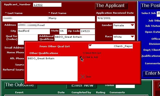 To extend the sense of doing all the work from a very limited number of screens, many data entry functions that involved the presence of more fields and/or workflow-restrictive scripting that would require certain things to be done in a certain order or in a certain way were done via "pop-ups" -- dialogs that would float above the regular main menu screen. Other fields and buttons would remain visible in the background but would not be accessible until the task pertinent to the pop-up dialog was completed, at which point the pop-up dialog would disappear.