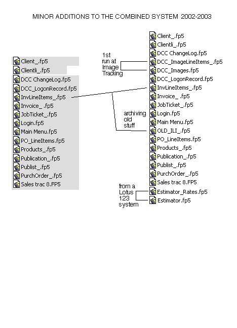 In New Jersey, a cost estimating system used to obtain numbers for the salespeople to use in their proposals, had been written in the Lotus 123 spreadsheet application, and this was ported to FileMaker and directly connected to Sales Trac (the sales / proposal system used in NJ).