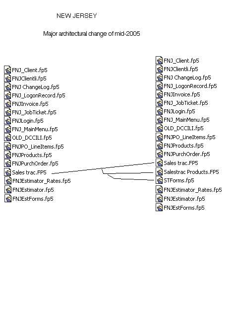 It was time to break its components out into related files, as requested changes were increasingly awkward and convoluted and finally impossible to implement within the overly simple flat file architecture. So the flat-file Sales Trac gave way to a 3-file relational system:
